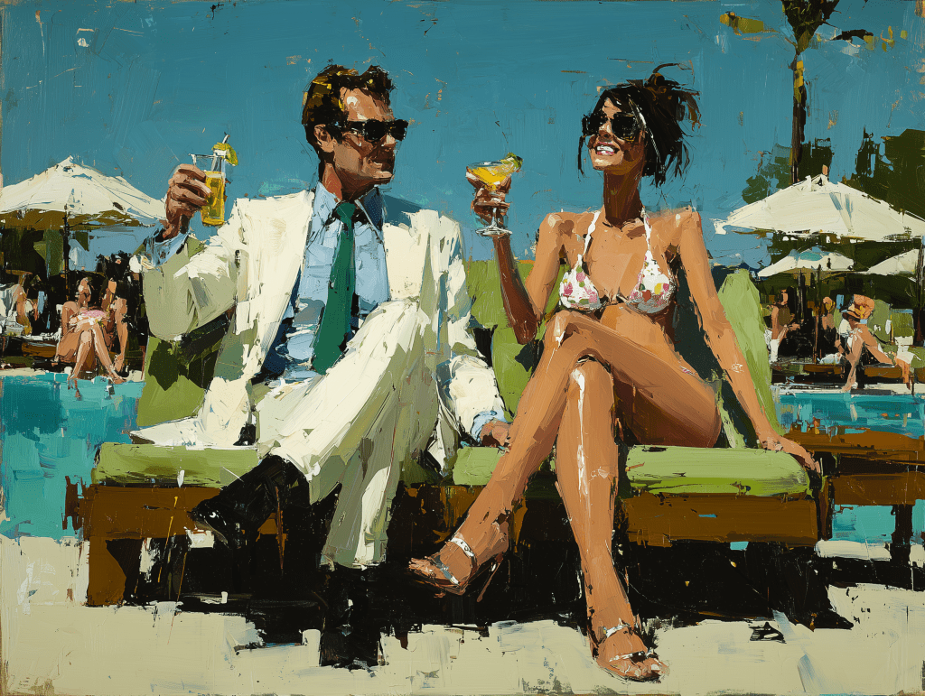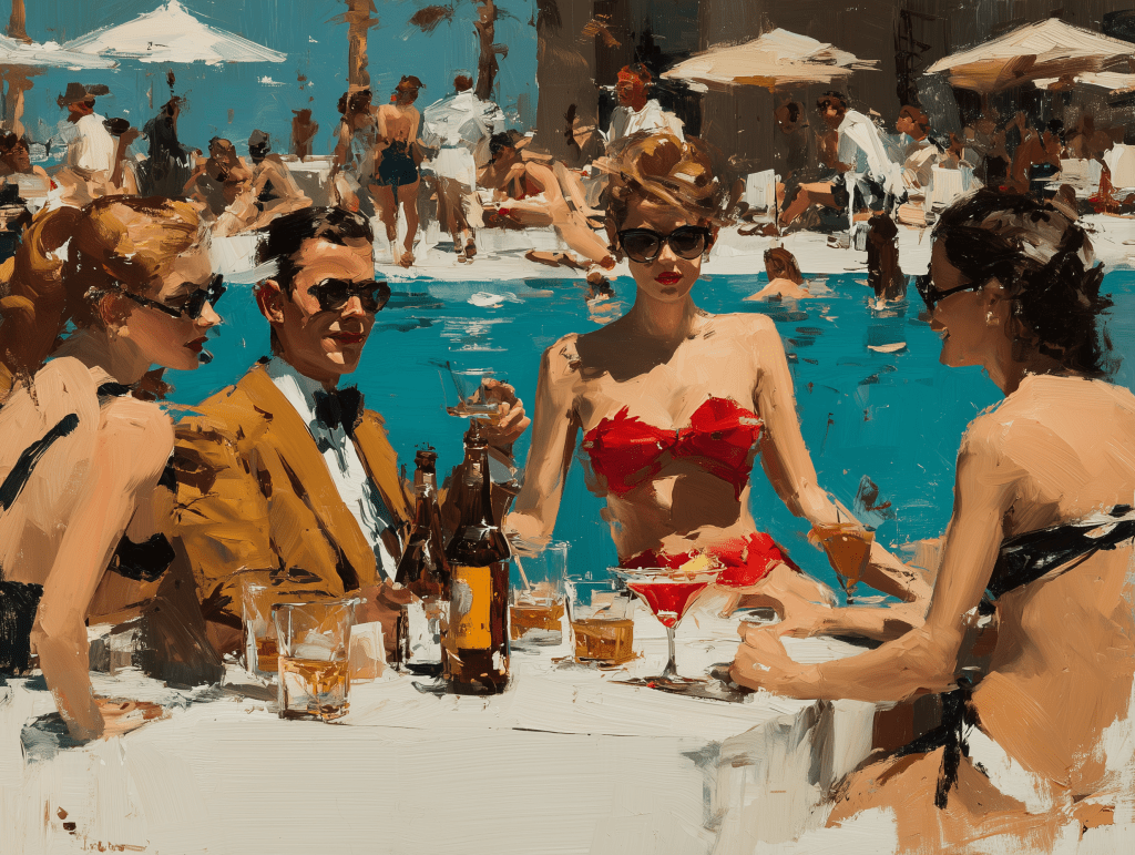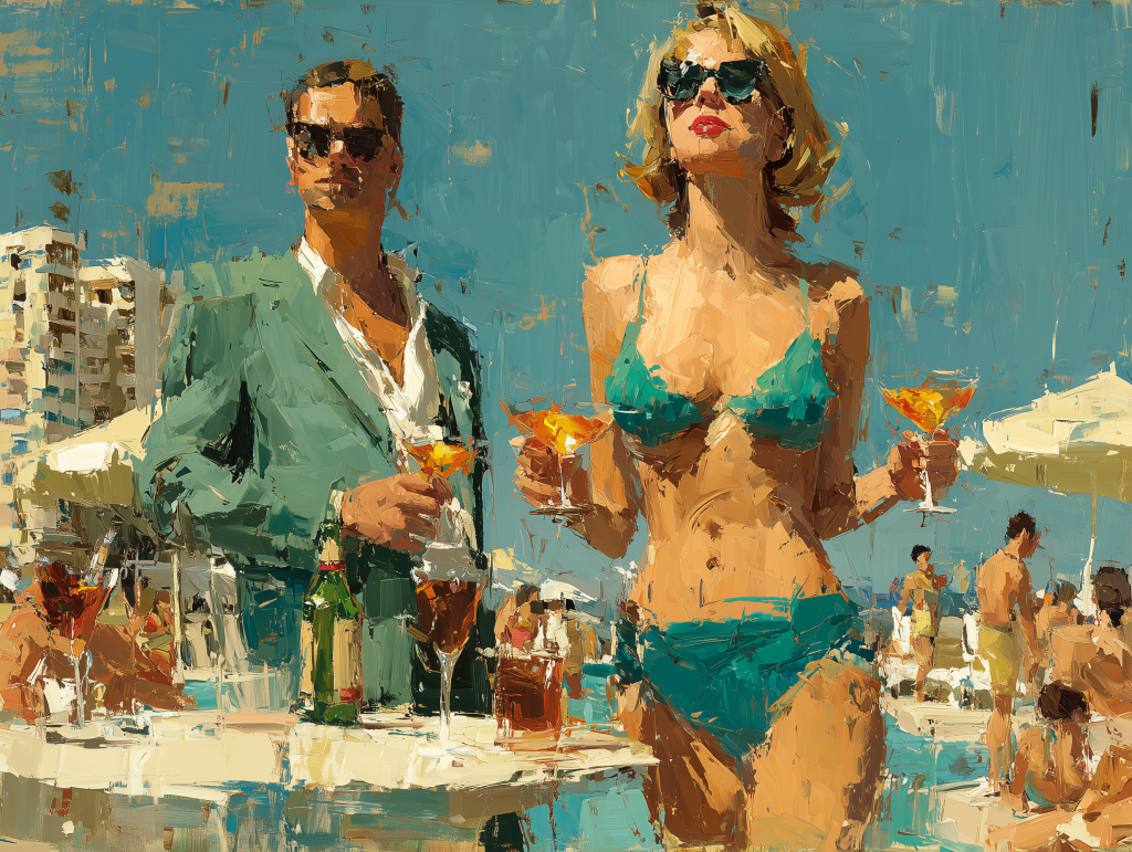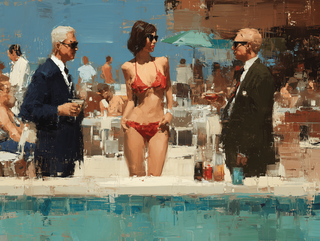 Brat Summer be dammed, this is 1970 in Malibu and the hippy culture has not touched the advertising executives or their desire so present capitalism, using their chosen props of sharp suits and bottle blondes, they are living the American Dream, sleepwalking, cocktails in hand, into an unsatisfying summer of awkwardness.